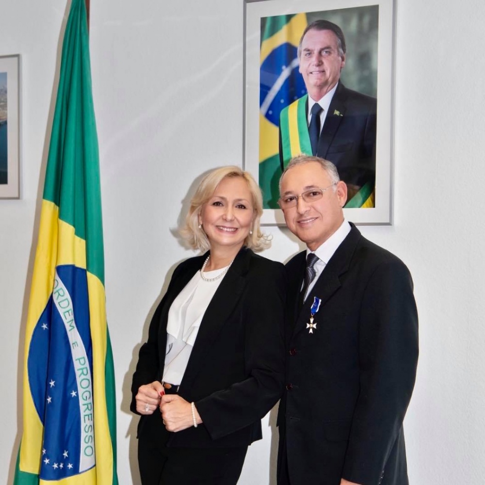 O Presidente da República Federativa do Brasil, Jair Messias Bolsonaro, decidiu homenagear com a medalha da Ordem do Rio Branco, Vicente Mello Medeiros (aqui ao lado da sua esposa Kátia) que é o fundador e iniciador da Associação Projeto Resgate, por seu comprometimento abnegado na luta contra o Tráfico Internacional de Pessoas.